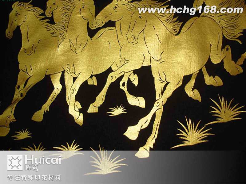 燙金漿一般使用80目-100目的紗網(wǎng),不同的圖案選用不同的數(shù),印漿時(shí)不能太稀,直接燙金須印三次二刀,這樣能使印后表面平坦,便于燙金后花位的牢固度。自然干燥后用壓燙機(jī)130℃-150℃壓燙10秒或1-2分鐘,(時(shí)間與溫度是根據(jù)漿的干燥程度而定)待冷卻后撕下金銀紙泊即可。