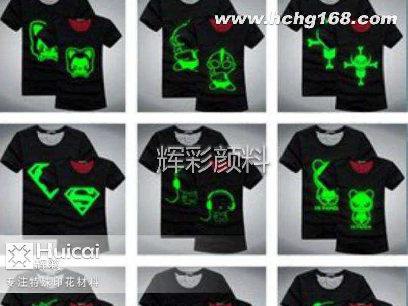 涂料印花材料:珠光粉印花,熒光粉印花,金粉印花,色涂料印花、夜光粉印花等 。