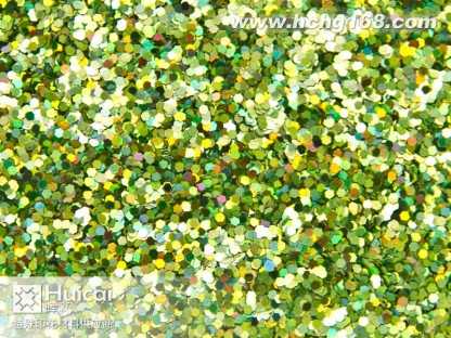金蔥粉:又名閃光片。包括鋁質(zhì)金蔥粉,聚酯金蔥粉,幻彩粉,鐳射金蔥粉等。有鋁質(zhì),PET,PVC材質(zhì)。大小規(guī)格(size)由1/256(0、1mm)至1/8(3、0mm)。形狀有六角形,四角形,長條針形和不規(guī)則形狀,并有多種顏色可供選擇。各種材質(zhì)金蔥粉可不同程度承受高溫(由80*C,180*C,300*C不等) 。