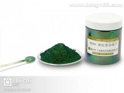 8060灰紅變金綠變色龍粉其變色原理為吸收特定波長之紫外光源,藉由該光源之能量而產(chǎn)生顏色變化(變?yōu)樽仙?、紅色、黃色、天空蘭色),當(dāng)特定波長的紫外光源不在時,即恢復(fù)原來的顏色。